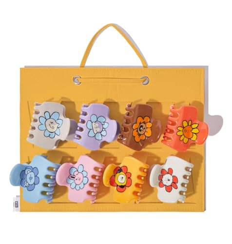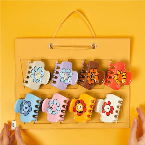 - BRIGHTEN UP YOUR SPACE: Elevate your style with our vibrant claw clip organizer adorned with floral prints and adorable BT21 characters, adding a playful touch to your claw clips collection. Brighten up your look while keeping your hair in place with this fun and functional hair clip organizer.