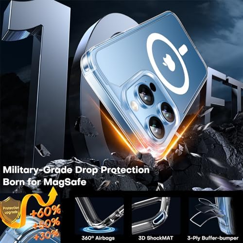 TAURI for iPhone 13 Pro Max Case, Compatible with Magsafe [Yellowing Resistant] with Screen Protector, Military-Grade Protection, Slim Magnetic Phone Case, Clear