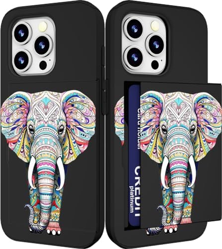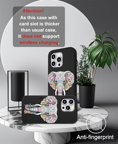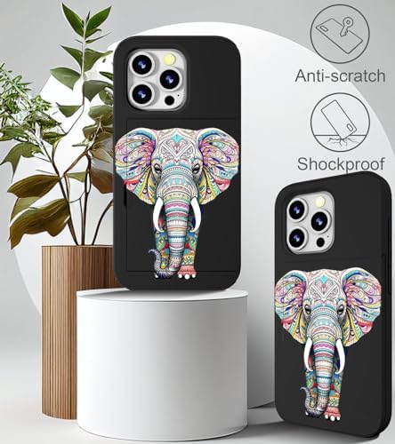 Compatible for iPhone 15 Pro Max Case Cute with Card Holder Slim Slot Phone Promax Wallet Cover for Women/African Elephant Design Animal Ethnic Stylized Pink