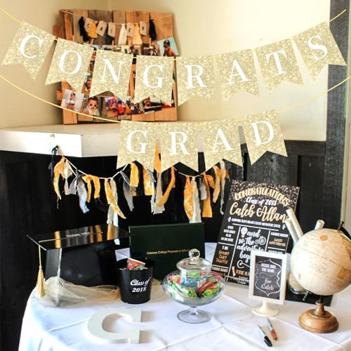 - Congrats Banner: Sparkling and eye-catching gold color adds brilliance to the space decor. It can be easily hung on ceilings, walls, fireplaces, windows, gift dessert tables, mantles, doorways, arches, gardens, living rooms, and can be used as a photo shoot prop for congrats decorations
