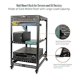 【Powerful load-bearing】 Constructed from durable Cold Rolled Steel, Rack Shelf Back Support enhances stability, wall-mounted capacity of 130lbs, the ground-mounted up to 260lbs 【Considerate Designs】Open-frame layout, including a top panel adding space, Anti-Slip Shelf Stops fixing devices and compatible racks for stack and expansion to meet requirements of home server rack 【Complete Accessories】 A 20U open frame server rack, two ventilated shelves, four shelf stops, four velcro straps and a set of equipment mouting screws 【Versatile Application】 Ideal for space-efficient multi-device setups in warehouses, retail, classrooms, offices and more; Excellent choices as AV Rack/IT Rack 【Effortless Setup】 Network Rack includes hardware, a comprehensive manual, mounting hole drilling template and an online assembly video to simplify setup