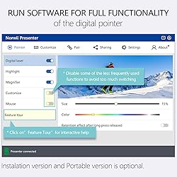 Compatibility - ①The presentation clicker can be used on both TV and projection screens. The digital pointer is specifically designed for TV screens. Please keep the Norwii Presenter software running when using the digital pointer. ②The presentation remote works with devices running Windows 10, MacOS 10.15 or later. ③For details on feature compatibility, see the User Guide on the product details page Powerful features - ①Advanced features such as Digital Pointer, Highlight, Magnify, Annotate allow for rich content interaction during your presentations. Tips: Advanced functions are enabled via Norwii Presenter software preloaded in the USB receiver. ②Basic functions of the wireless presenter cover your daily presentations: Physical pointer, page forward/backward, black/full screen, volume control, left mouse click Mouse-like Cursor Control and Customization - Wireless clicker for PowerPoint presentations, control the cursor in the air to play and pause videos, open links, and enjoy a range of rich content interaction.②You can reconfigure some of the key's function. ③Pointer icons can be customized with personalized icons Smart Time Management - The Presenter Clicker vibrates five minutes before the end of your presentation and again when your time is up. This feature is enabled through the Norwii Presenter software Multi-functional USB receiver - it's not just a USB receiver, it's a USB flash drive. It comes preloaded with Norwii Presenter software, which you can also use to carry presentations Instant Access to PowerPoint’s Built-in Virtual Pointer – No Installation Required (Only works in Full-Screen Mode on Windows)