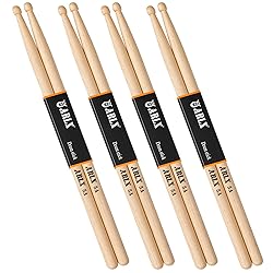 PROFESSIONAL 5A DRUM STICKS - Package includes 4 pairs of drum sticks. Suitable for drummers of all genres, these 4 pairs of drum sticks can be prepared for live performances, studio recordings, and practice sessions. STRONG & DURABLE MAPLE DRUMSTICKS - Crafted from premium North American hard maple, these drumsticks offer unmatched strength, durability, and a substantial sense of gravity, allowing you to exert precise control over your performances with confidence. NATURAL FINISH - Comfortable and Slip Resistant. Each drum stick meets the 5A specifications, featuring a comfortable grip and versatile performance. PERFECT FOR ALL DRUMMING ENVIRONMENTS - Whether you're playing on a drum set, practice pad, or electronic drum kit, our drumsticks deliver consistent performance and reliable sound quality in any drumming environment. BALANCED WEIGHT - Each drumstick undergoes rigorous quality control measures to ensure consistency in weight, balance, and resilience.
