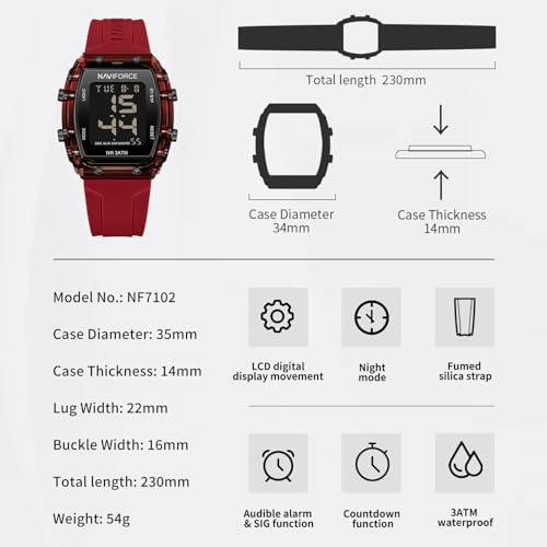 NAVIFORCE Digital Multi-Function Watch for Men,Fashion Waterproof Sports Women Watches and Mens,Colorful Silicone Band,Men's Gifts,Women's Gift