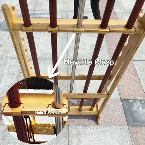 - 【Large Katana Stand Display】The 10 tier / 5 hole vertical sword stand floor is made of high quality wood, it's which has good stability, strong bearing and save durability. simple and generous design. which not only saves space but also can fully display the characteristics of your favourite sword.