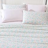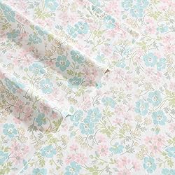 - Mix it up, with Laura Ashley stylish 6-piece 100% Cotton Percale Sheet Sets. Available in multiple styles, the set includes a flat and fitted sheet, and four pillowcases. The flat sheet is printed features a pink and blue all-over ditsy floral pattern, accompanied by a pink stripe on the fitted sheet. A pair of pillowcases in each print round out the vintage-inspired duo. These sheet sets offer a coordinated collection to create the perfect room décor. Mix and match to suit your unique style. The set includes a fully elasticized fitted sheet that ensures a perfect fit and prevents slipping. Sheet set includes one flat sheet, one fitted sheet, and four pillowcases and the ensemble is machine washable for easy care.