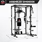 Multi-functional Home Gym Choice - The EVOLPOW M2A POWER CAGE with Smith Machine seamlessly combines a squat rack, POWER CAGEwith Smith Machine, cable pulley system, built in PEC fly machine, multi-grip pull-up bar, and a 360°landmine, this deluxe home gym system offers a total body workout that can greatly improve your exercise efficiency. Perfect for everyone, from beginners to fitness enthusiasts looking to enhance their strength and muscle development! Versatile Chest Training Hub - Featuring a built-in butterfly station, our M2A POWER CAGE with Smith Machine is designed for focused chest workouts, allowing you to sculpt and strengthen your chest muscles with precision. Great for pectoral and rear deltoid, chest, back, and shoulder training for Home Gym. Dual Pulley System fits 3-4 Person One Time - With nylon-coated cable and independent dual pulleys, our rack accommodates up to 3 or 4 users simultaneously. The dual cable pulley system offers flexibility for both unilateral and bilateral exercise routines such as fly, lat pull down, lift up, curl, row. With a 2:1 pulley ratio, it provides seamless motion, extended travel, and improved responsiveness. Stability and Compact Design - Constructed from robust 50x50mm steel tubing and durable 14-gauge steel, the M2A POWER CAGE with Smith Machine exemplifies unmatched strength and longevity. Footprint - 70.1'' H X 74.4'' L X 84.6'' W inch.| Max capacity on J Hook - 1000 lbs.| MaX capacity on Smith Bar - 500 lbs.| Max capacity on Safety Bar - 500lbs.| Max capacity on Pulley System - 800lbs.| Max capacity on Dip Bar - 400 lbs.| Max capacity on Pull-ups Bar - 400 lbs. Suitable for all individuals, from beginners to professional athletes - It provides additional balance support and safety during strength training. Whether you're looking to build strength, recover from an injury, or improve your overall fitness, this product has got you covered. It is perfect for anyone looking to establish a home gym setup and reap the benefits of a versatile and efficient workout routine.