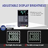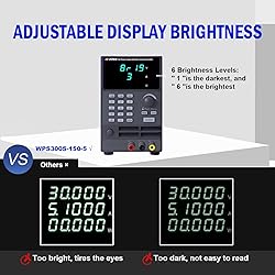 Wide Range Switching DC Power Supply: MATRIX WPS300S-150-5 variable power supply rated output 0-150V, 0-5A and 300W. For electronics repair and testing, DIY electronics projects, electronics lab, school projects Accurate to within 1mV: 1mV 0.1mA High resolution benchtop power supply with low ripple noise<10mVrms and<3mArms. High accuracy programmable power supply ensures reliable and consistent performance in testing and development scenarios Keyboard Lock Function: Convenient user interface, the voltage and current setpoints can be entered either using the multifunction knob or by directly keying in the desired value. Press and hold the ON/OFF button to lock or unlock the keyboard to prevent accidental LIST output function: The number of consecutive cycles can be set between 0 and 9999 Interface: The lab power supply comes standard with RS232, RS485, and USB communication interfaces, supporting SCPI and MODBUS instructions, enabling seamless integration with various devices and systems for convenient data transmission and remote control Advanced Features: The programmable variable DC power supply comes with advanced features that include temperature monitoring, voltage and current range settings, one-touch initialization, and overvoltage, overcurrent, and overheat protection are integrated. In addition, the DC variable power supply can store and recall up to 9 sets of data for convenient use. Intelligent fan control is also included to enhance energy efficiency and minimize noise User-Friendly: Only 4.4lb, compact for convenience. The bench power supply variable has a high-precision five-digit LED display. Can adjusted to 6 levels of brightness. And the buzzer can also be turned off as required.