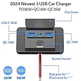 No need to drill a big hole: Surface mounting, can be installed on a flat surface, no need to open a big hole, just open a small hole, put the wire in, the black wire connects to the negative pole, the red wire connects to the positive pole, tighten the screws and cover the lid. Charge 3 devices at the same time: This 12V USB panel outlet is upgraded with 3 ports and equipped with a smart chip. It can charge 3 devices at the same time without interfering with each other, the PD port has a maximum output of 36W, and the QC port has a maximum output of 18W. PD USB C port: Adopting the latest Power Delivery fast charging port, the output power is up to 36 watts, suitable for charging laptops, iPad pro, iPhone 15/14/13/12/11 Mini/Pro/Max, Samsung GalaxyS22, S21, S20 S10 and other devices, to meet your charging needs. charging needs. Anti-slip power swith: Compared to the unswitched designs on the market, our upgraded 12-volt USB socket adds a sleek, non-slip push-button switch. This prevents the battery from being drained by the LEDs being constantly lit, effectively extending the life of the battery. Note: The switch is off by default. Easy to open cover: Unlike the spring-loaded covers commonly found on the market today, ours is a flip-top dust cover that not only prevents water droplets and dust from seeping in, but also simplifies the process of plugging and unplugging the device, which eliminates the inconvenience of a spring-loaded cover that often pops open. (Recommended for use in an indoor automotive environment, away from water and harsh weather conditions).