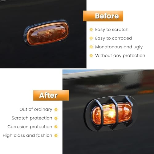 - 🚗【EASY INSTALLTION】:Side Marker Light Grill Protector Cover is easy to install, with self-adhesive tape, fit quite tight and nice