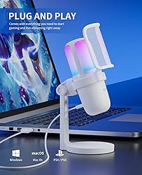 🏆Colorful RGB lighting: The KO-STAR gaming computer microphone is equipped with RGB breathing LED lights, which can automatically change into multiple colors to create an ideal carnival atmosphere and make your gaming or live streaming effects more eye-catching. It can also visually display the working status of the microphone. Light on: working, light off: mute 🏆EXCELLENT SOUND QUALITY: The cardioid pickup gaming microphone is designed with a 14mm premium sound chipset and 192kHz/24-bit high sampling rate, and features noise reduction to capture clear, smooth, vivid sound and suppress unwanted background noise. High-quality sound makes USB computer microphones the choice for presentations, podcasting, Skype, recording, streaming, or gaming 🏆QUICK Mute Button: The condenser gaming microphone has a mute touch button on the top for easy touch. Even if you are focused on gaming and need to cough or sneeze, you can instantly mute your computer microphone with one click without having to hold down the computer microphone button. Let you know at a glance when the mute RGB light of your computer microphone is turned off and when the non-muted RGB light is on. 🏆Noise reduction accessories: Computer gaming microphone comes with pop filter and shock mount. These accessories can help you filter out noise from your breath, air, or desktop vibrations. Let your teammates or viewers hear clearer, smoother sound 🏆Plug and Play Setup: You just need to plug in the USB cable to use this computer microphone. No additional drivers are required. This streaming microphone is compatible with computers, PCs, laptops, desktops, Mac OS, Windows, PS4, PS5 or all Type-C phones, tablets (requires USB C to USB adapter - included in the package). Not compatible with Xbox. Alternatively, you can mount the microphone on a standard boom arm using a 5/8" male to 3/8" female adapter (not included)