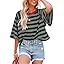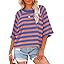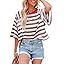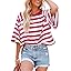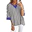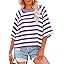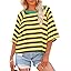 Dokotoo Tops for Women Striped 2025 Fashion T Shirts for Women Color Block Crewneck Design Loose Basic Tee