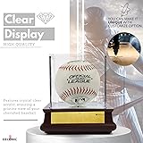 DECOMIL - UV Single Baseball Display Case, Holder - UV Protection Acrylic Cube with Wooden Stand Cherry Finish Customize, Upgraded, Name Plate