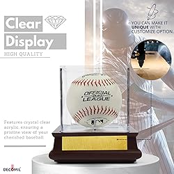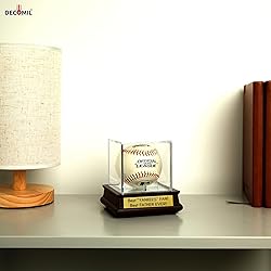 - Why DECOMIL Solid Wood Single Baseball Display Case, Table top, UV Protection Acrylic Cube, with wooden stand. Great to showcase a signed baseball - Perfect and visible way to display your valuable and important baseball collections by solid wood display for table top? - HIGH QUALITY WOOD AND CLEAR UV GLASS – Made by high quality wood to hold baseball and clear UV glass it looks really visible and gorgeous. You can display your baseball proudly, gift - awards and memorabilia. - DECOMIL Solid Wood Single Baseball Display solid cherry premium. SATISFACTION and QUALITY GUARANTEE.- Baseball Display case for to give present all friends, class mates, college teams fan, all other sports fans as well include Christmas and Birthday gift - Bottom part has mirror which looks more rich- Beautiful Cherry wood finish with as show as in the pictures, create an elegant view with this lovely display Baseball - Perfect Gift pretty much all jersey's include Father's day, Mother's day, Christmas and other unique occasions. - No assembly required. - Guarantee quality is as good as appear on picture if not better. - Each product come with individual box wrapped with bubble wrap. - BASEBALL NOT INCLUDE. - Product Size: 4.5 X 4 X 4 Inches. -Package Size: 6 X 5 X 5 Inhes. - PLATE SIZE: 2.75" X 0.75" - ALL BASEBALL TEAMS