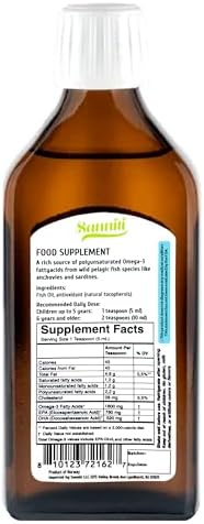 Sanniti 100% Natural Omega-3 Liquid | A Rich Source of EPA Fatty acids | Vitamins A & D3 | Product of Norway Sourced from Anchovies, Sardines, and Other Wild Fish, 8.45 fl. oz