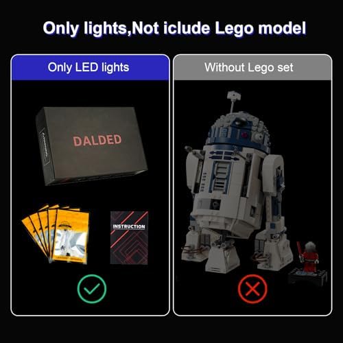 - 🤖Upgraded Led Light Kit - DALDED light set is used to light up the building blocks compatible with Lego Star Wars R2-D2 75379.▲(𝙊𝙉𝙇𝙔 𝙇𝙄𝙂𝙃𝙏 𝙆𝙄𝙏, 𝙉𝙊𝙏 𝙄𝙉𝘾𝙇𝙐𝘿𝙀 𝙏𝙃𝙀 𝙈𝙊𝘿𝙀𝙇)▲ DIY enhances the playability of your building set and brings it to life and interesting with vibrant lighting effects.