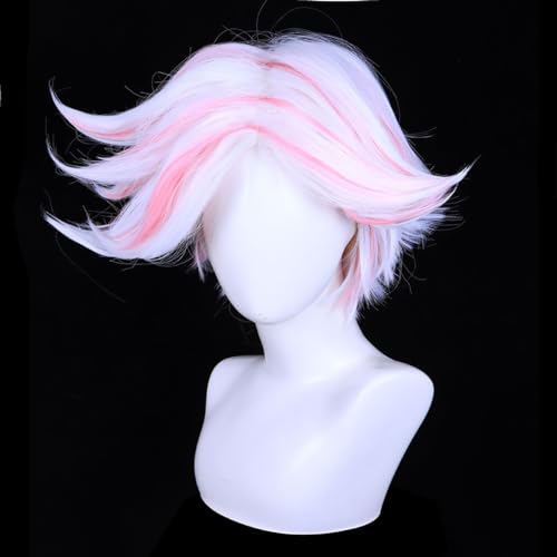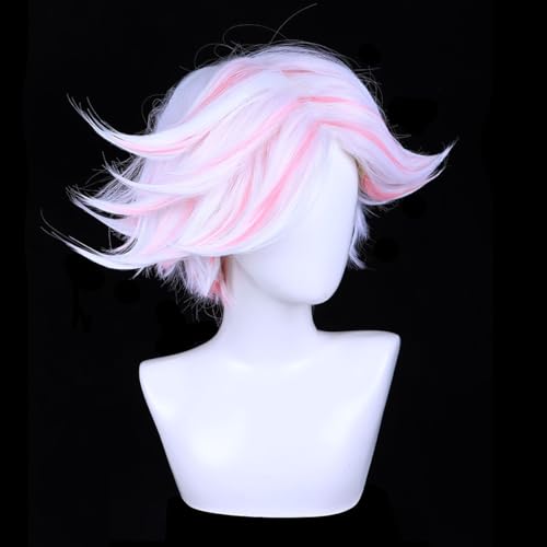 FantaLook Short White and Pink Cosplay Wig for Women Halloween Costume