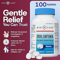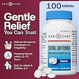 GeriCare Docusate Sodium Stool Softeners | Compared to Colace Regular Strength | Ideal for Constipation Relief,100mg Crushable Tablets. Dye Free (100 Count) Made in The USA.