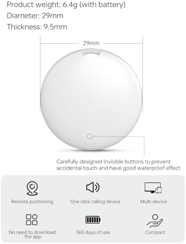 - [Smallest and Thinnest on the Net] Portable anti-lost tracker measures 1.1 x 0.4 inches (29 x 9.5 mm), and weighs only 0.2 oz (6.4 g), making it lightweight and thin, making it very convenient to carry. The holes allow you to easily attach it to your bag, key chain, pet collar, etc.
