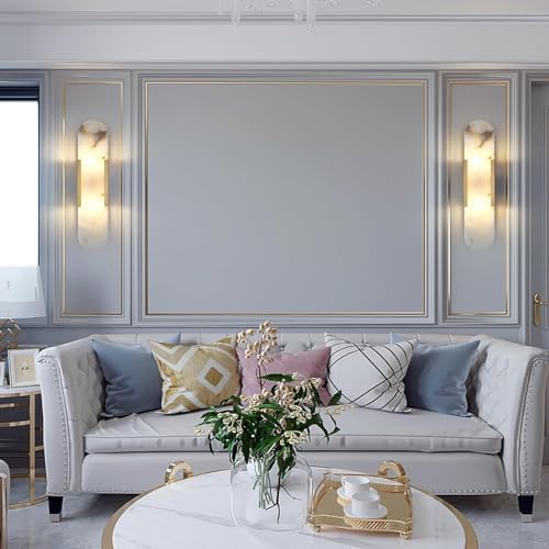 - [WIDE APPLICATION]: Natural alabaster sconces wall lighting bathroom light fixtures perfect addition to any home: It's contemporary elegant looking and make it perfect for use in living room , bathroom vanity, dining room, restaurant, hallway, bedroom, gallery, kitchen, stairs, porch, entrance, corridor, bar, club,etc.