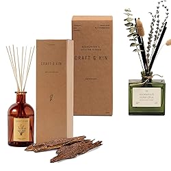 BOTANICAL REED DIFFUSERS: These sophisticated reed diffusers include elegant dried flowers that add a charming and natural element to the diffuser, enhancing the overall aesthetic appeal. WHAT YOU GET, AROMATIC REED DIFFUSER SET: Includes (1) 8 rattan oil diffuser sticks, (2) an elegant amber glass vase and (3) premium natural oud wood fragrance essential oil (5.75oz), good for 90-120 days continuous fragrance. QUALITY MATERIALS: Made with natural essential oils for an authentic and high-quality fragrance, this 5 oz green glass reed diffuser comes in ready-to-give premium packaging. The dried flowers will elevate any room’s aesthetic. EFFECTIVE RATTAN REED DIFFUSER STICKS | LONG-LASTING SCENT: Rattan sticks are best to soak up the fragrance oil and disperse the scent into the air. The dark colored amber vase keep the essential oil intact longer by eliminating light exposure and designed to have a small opening to help mitigate oil evaporation. CRAFT & KIN GREEN COLLECTION: We believe home is where we should feel as relaxed, calm, and refreshed as we do when walking in nature. This inspired our green collection with natural soy wax candles, classic reed diffusers, reed diffusers with flowers, and room sprays.