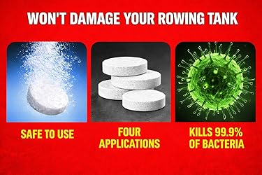 Effortless Maintenance: Keep your rowing machine in pristine condition with our powerful rower tank water purification tablets. Designed specifically for rowing machines, these tablets prevent the build-up of dirt and grime, ensuring your machine remains clean, odor-free, and ready for use anytime. Safe, Eco-Friendly Formula: Our tablets are made with a safe formula that is gentle on your machine but tough on impurities. Suitable for all water rowing machines, they provide peace of mind, knowing you’re maintaining your equipment without harsh substances. Easy to Use – Just Drop and Row: Simplify your rowing machine maintenance with our easy-to-use tablets. Simply drop a tablet into the water tank as directed, and let it dissolve. No measuring, mixing, or mess. It’s the convenient way to maintain crystal-clear water in your rowing machine. Most water rowers recommend cleaning your tank every 3-6 months. Important Tip: For optimal cleanliness of your rower’s water tank, please avoid using hard water. Opting for bottled water over city tap water can significantly enhance the clarity and purity of the water. If the tank becomes dirty, we recommend thoroughly flushing it with rubbing alcohol before refilling it with clean water. Adding a purification tablet to already cloudy water will not rectify the issue. For the best results, ensure the water is clear before introducing a purification tablet. Eco-Friendly and Efficient: Our eco-friendly tablets not only keep your water clean but also reduce the need for frequent water changes. This not only saves you time but also conserves water, aligning with your eco-conscious values. Perfect for home gyms, fitness centers, and eco-minded athletes.