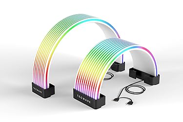 BRING LIFE TO YOUR PSU CABLES: Upgrade your gaming PC with the TECWARE Flex RGB Cable Cover Kit, featuring high-density ARGB lighting with up to 81 LEDs per cable. These flexible RGB PSU cable extensions create bright and consistent color flow across your 24-pin motherboard and 8-pin or 16-pin GPU cables, giving your rig a premium, customizable glow. Made from durable silicone for smooth bends and a clean finish. SEAMLESS SYNC WITH YOUR SYSTEM: Fully compatible with 5V 3-pin ARGB headers, this RGB lighting kit for PC cables connects directly to your motherboard or controller for synchronized effects across your setup. Supports popular lighting software for unified color transitions, animations, and brightness control. Perfect for gaming PCs, custom builds, and ARGB fans or components. COMPATIBLE WITH MOST PSU CABLES: Designed as a universal ARGB PSU extension, this RGB cable kit supports standard 24-pin motherboard and 8-pin or 16-pin GPU power cables up to 14 mm thick. The flexible design makes it easy to install in most PC builds, ensuring a clean and professional appearance. Ideal for upgrading existing PSU cables without full replacements. SMOOTH AND VIBRANT RGB STREAM: Enjoy a seamless and vivid RGB lighting experience with up to 81 LEDs per cable, supporting multiple lighting effects across your setup. While the LEDs cannot be controlled individually, each RGB power supply cable cover diffuses light evenly for a smooth, dynamic ARGB effect. Whether you’re showcasing your GPU, motherboard, or full build, every color transitions beautifully without flicker. KIT INCLUDES: The RGB PSU cables kit includes a 24-pin motherboard cable cover, an 8-pin/16-pin GPU cable cover, 12 cable braces for easy installation; and male and female 5V ARGB 3-pin connectors; power cables NOT INCLUDED