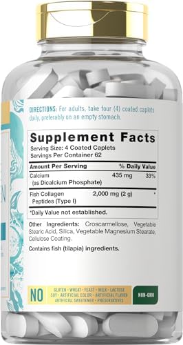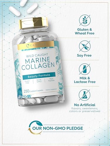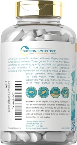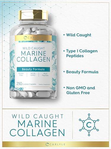 Carlyle Marine Collagen Peptides Supplement | 250 Caplets | for Women and Men | Type I with Calcium | Non-GMO & Gluten Free