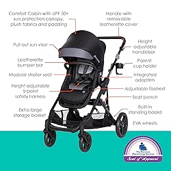 - Stroll your way with the Baby Trend Morph Single to Double Modular Stroller! This product offers almost unlimited options of stroller configurations to compliment every family outing. This single to double stroller is ideal for your growing family, and is currently the only single to double stroller on the market that has a built-in bench and standing board for unique riding options! The included adapters allow this stroller to transition into a double stroller that is adaptable for your family's needs. The stroller seat is able to convert to a bassinet for ultimate comfort for your baby. The stroller footrest is adjustable and will extend the life of this product within your family. The Morph Single to Double stroller also offers innovative features for parents, such as the height adjustable handlebar and parent tray with a cup holder and cell phone compartment. The extra-large storage basket allows for hassle-free accessibility for all your travel essentials!