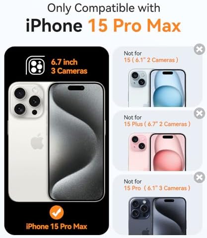 Perfect Compatibility: specifically designed for iPhone 15 Pro Max 6.7 inches (3 Camera Version). Tip: The translucent matte design on the back panel creates different visual effects that are influenced by the color of your phone