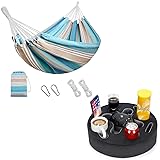 Perfect Single Size Hammocks for Outside: INNO STAGE hammock swing with a hammock bed surface length of 86.6" and width of 47.2", our hammocks is designed to accommodate a single person perfectly. The overall length of 126" provides ample space for relaxation while still maintaining a compact size. It can support a weight capacity of up to 242 pounds, ensuring stability and safety during use. High-Quality Material Indoor Hammock: Our hammock is made from tightly woven, ultra-comfortable cotton and polyester materials, it offers exceptional comfort wherever you choose to relax. ensuring a soft, comfortable, breathable, and durable experience. Additionally, the hammock's sturdy construction ensures safety for both children and pets. Portable and Easy to Use Indoor Hammock: We understand the portable hammock's importance of convenience in outdoor activities. Our hammock comes with a compact carrying bag and hammock straps for easy travel, and it is very convenient for you to set up this hammock with hooks in the backyard, patios, porch, garden, indoor or outdoor use, or take it with you anywhere you want! Easy to carry and store. Are you tired of drink spills on your sofa or bed? With this couch cup holder pillow, you don't have to set drink on the floor to avoid spilling. It is a perfect couch buddy for daily use on sofa, beds, cars, RVs, picnics, camping trips, beaches and more.As a great replacement for a side table INNO STAGE couch cup holder is equipped with 7 compartments: 4 different-sized cup holder holes, 2 slender holes, and 1 extensible "+" shaped hole. It allows for holding not only coffee mugs and cups but also remotes, phones, glasses, drinks, cans, snacks, wipes, game controllers, and more with ease