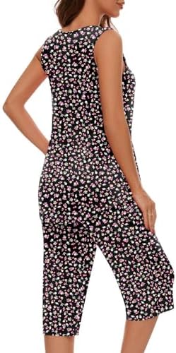Lroplie Pajamas Sets For Women 2 Piece Sleeveless Pjs Tank Tops Sleepwear Capri Pants With Pocket Ladies Soft Loungewear Sets