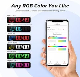 【Large Led Display】Sized is 15.2*4*1.5inch, featuring 2.7inch large digits and 6 levels of brightness adjustment. Customizable RGB colors let you choose any LED color you like, making it the perfect decorative piece. 【App+Remote Control】Supports both app and remote control options. The app is feature-rich, so you never have to worry about losing the remote. It automatically syncs time via Bluetooth, accurate to the second, making it very convenient. 【Timer Function】It’s also a very professional and easy-to-use timer. You can easily use the stopwatch, countdown timer, and programmable interval timer features. 【Custom Hourly Chime】The clock can announce the time with voice at the hour you choose. You can easily adjust the hourly chime time as needed without any interruptions at other times, making it very user-friendly. 【Alarm Clock】It can store up to 10 alarms. You can use the app to set long-term alarms for specific dates (like anniversaries) and repeat alarms. It offers 3 ringtone options and 6 volume levels to choose from. 【Note】Equipped with a USB power cord of over 95 inches, must be plugged in to use. Not battery powered.