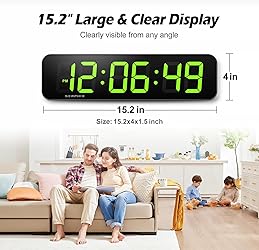- SERPHIX large digital wall clock is a great digital clock and a great large wall clock,It has 15.2 inch large screen display, 2.7 inch high contrast clear jumbo digits make it much easier to read even from a distance and from all angles,making it the perfect digital wall clock for seniors and the visually impaired, and the perfect gift for friends,partners and the elderly.It has a variety of useful functions, including 12/24 hour normal,countdown,stopwatch, Time, Date, Week,the clock also indicates the indoor temperature, both in Fahrenheit and Celsius, Keep an eye on the indoor temperature and remind the elderly, children, wife or husband to keep warm。This wall clocks is suitable for living room, kitchen, garage, farmhouse, office, warehouse, classroom, garage gym, shop, nursery, nursing home, hospital,library.It's also a great gym timer and gym clock, Tabata,EMOM,AMRAP,Boxing,HIIT . It's also home gym décor, digital clock for classroom, kitchen wall clock, wall clocks for living room décor, electronic wall calendar.