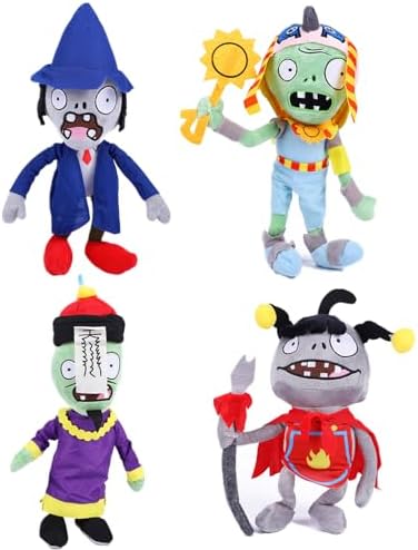 4 PCS PVZ Plant and Zombies Plush Zombies Sets 1 2 Stuffed Soft Toys Wizard Zombie, Sun Zombie, Red Boy Zombie, Sticker Zombie PVZ Figure Doll New