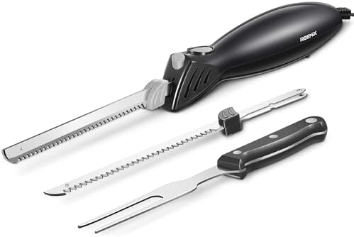Reemix Electric Knife, Z3042 Electric Knife Set for Carving Meats, Poultry, Bread, Crafting Foam & More, 2 Blades for Meats & Bread, Fork Included (Black)