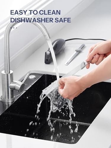 - Fast & Easy Slicing: The electric carving knife's powerful 100 watt motor and reciprocating stainless steel blades with serrated edge give you the precision and control to cut quickly and evenly every time you slic