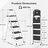 BONTEC 4-Step Ladder, 400lbs Max Load, Folding Step Stool with Tool Tray, Anti-Slip Pedals, Sturdy Steel, Lightweight Portable Ladder with Handrail for Home & Work Use, White