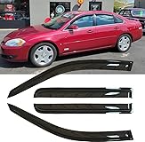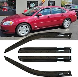 FITMENT: Passenger and Driver Side Window Wind Deflector fit for Chevy 2006-2013 Impala All Models;Durable Rain Guards Shield Fit For 2014-2016 Impala Limited Model Only; PACKAGE INCLUDED: 4pcs Sun Shade Dark Smoke Window Visors(Installation instruction is included,Please read User Instruction before installation) DURABLE AND NICE: Our Vent Deflector made with Hardy&Shatterproof premium-quality reinforced acrylic,will not bend, break or crack. Dark smoke colored streamlined flexible design is chosen finest for sun protection,also adding to the appearance of your precious! MAKE TRAVEL ENJOYABLE AND SAFE: You can drive in comfort with our rain guards, without worrying about the noisy wind, chilly snow, annoying rain sprays,blazing sunshine. It help improve ventilation to reduce window fogging keep sight clearly make rides safe. EASY INSTALLATION: Direct Tape-On design,easy Peel-N-Stick installation and no disturbed in the windows up and down.Easy to remove will not affect your car appearance(No Cutting & No Drilling)