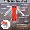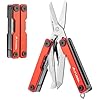 FLISSA Multitool Scissors, 11-in-1 Multi Tool Pocket Knife, Stainless Steel Mini Multitool with Bottle Opener, Screwdriver, Aluminum Handles, Spring - EDC for Outdoor, Camping, Hiking, Fishing, Red