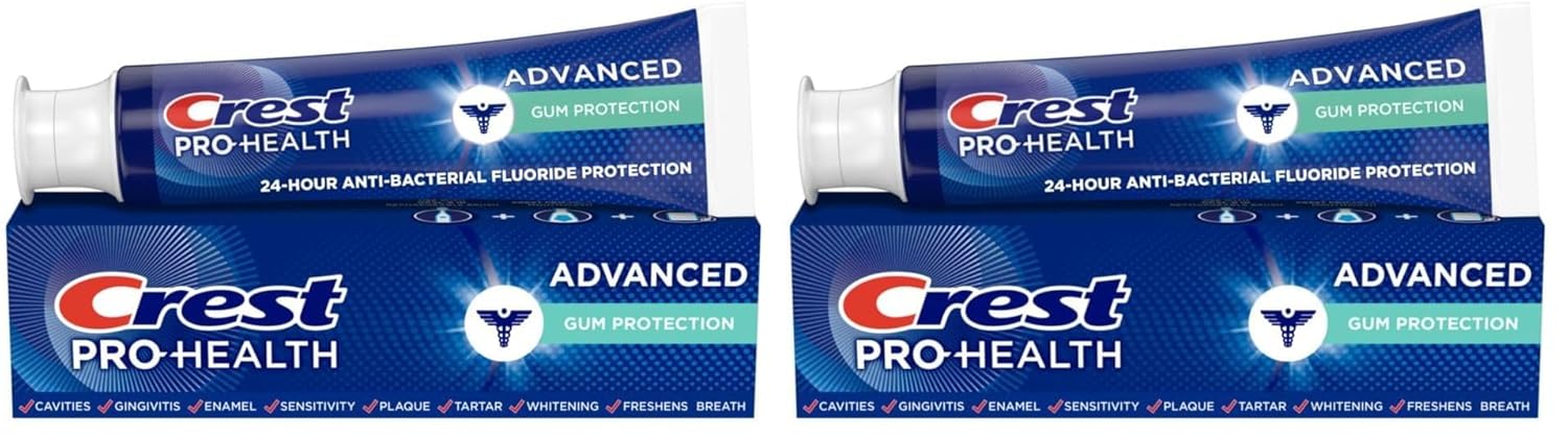 Starting from Day 1, Advance to Healthier Gums and Stronger Teeth* with Crest Pro-Health Advanced Gum Protection. This toothpaste contains ActivClean Crystals for stain prevention. It also provides Crest’s highest level of protection against plaque bacteria to keep gums healthy and provide longer lasting freshness**. It is made with patented stannous fluoride and provides clinically proven protection. It provides 8 advanced benefits in 1, including: Fresh Breath and Whitening + Protection against Acid Erosion†, Sensitivity, Cavities, Gingivitis, Sensitivity, Plaque, and Tartar. *vs. ordinary toothpaste with continued use. Starts fighting plaque and protecting enamel from Day 1. ** vs Crest Pro-Health toothpastes †Acid Erosion Effects: Acids in everyday food can soften & thin enamel, leaving teeth less white, weaker, and sensitive