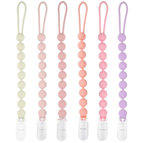 - 【Perfect Gift】6 pack beautiful color pacifier clips for girls, suitable for most kinds of outfits. This silicone pacifier clip is suitale for any occassions and is a perfect shower gift.