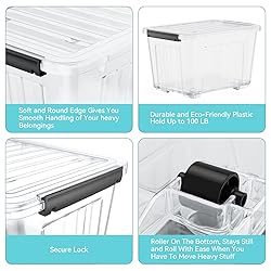 Nazhura 72 Quart Plastic Storage Bin, Stackable and Nestable Storage Boxes with Clear Lids and Secure Latching Buckles, Large Storage Container (Clear, 72Quart-4Pack)