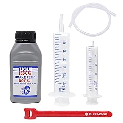 REUSABLE 20ML SYRINGE FOR CONTROLLED BLEEDING: The BleedZone reverse brake bleeder kit includes a reusable 20ml syringe designed for precise, mess-free brake bleeding. Ideal as a motorcycle brake bleeder kit, this tool supports controlled reverse bleeding and works as a reliable brake fluid bleeder kit or brake bleed kit for DIY riders. A practical brake bleeder tool for maintaining hydraulic brake systems without relying on a vacuum pump. DUAL HOOK-AND-LOOP FASTENERS FOR HANDS-FREE USE: This brake bleeding kit includes two durable hook-and-loop fasteners that secure hoses and components during brake system bleeding. The hands-free setup simplifies the process for one-person operation, making it ideal for a one man brake bleeder kit or reverse brake bleeder setup. A smart addition to any motorcycle tools collection or brake system bleeding tools. DURABLE BRAKE BLEEDER HOSE WITH ONE-WAY FLOW: The included brake bleeder hose is built for repeated use and efficient fluid transfer. Designed as a dependable brake bleed hose, it supports smooth bleeding and helps prevent air re-entry during brake flush tasks. This tubing functions as an essential brake bleeder hose for reverse bleeding and general brake bleeding tool applications on motorcycles. REUSABLE 60ML SYRINGE FOR LARGER FLUID TASKS: For more demanding jobs, this brake bleeding kit includes a reusable 60ml syringe to handle higher fluid volumes. Ideal for brake flush or fluid replacement, it works as a versatile brake fluid syringe, brake fluid extractor, or brake pump alternative. Perfect for riders who need a flexible brake bleeder kit one person solution for different motorcycle brake systems. THICKER TUBING FOR LONG-LASTING PERFORMANCE: Constructed with thicker, reinforced tubing, this reverse brake bleeder kit is designed for durability and long-term use. The robust hose minimizes wear while supporting consistent brake bleeding and brake flush tasks. An essential brake tool for motorcycle maintenance, this bleed kit for hydraulic brakes delivers dependable performance without the need for pressure or vacuum brake bleeder systems.