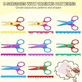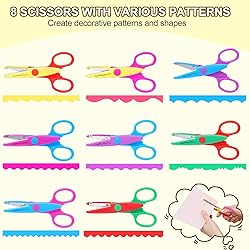 【8 Piece Craft Scissors Scrapbooking supplies】 Arts & crafts decorative scissors for paper set provides endless design possibilities for your albums, greeting cards, memory books, school supplies, tags & other paper & photo crafts,8 creative craft supplies scissors with unique pattern. 【Universal Craft Scissors Decorative Edge】 Ergonomic soft grip scrapbook scissors for crafting are comfortable for both right & left hand use; easy to use, very suitable for children to start learning to use scissors. The blade of these zig zag scissors is covered by plastic, it could prevent children from cutting their hands when using. 【Color Coded Convenience】 Bright colored handles in 8 separate shades offer smart, attractive addition to craft supplies; Each pairs of pattern shape scissors craft supplies has great design - clearly printed for fast pattern identification. 【Create Fun Decorative Borders】 Scrapbooking & Stamping supplies make intricate embellished cuts for distinct edging & borders; Crafting scissors scrapbook supplies helps to add ornamental frames to posters, construction paper or your favorite zink paper photos. 【Versatile Sschool Supplies & Scrapbooking Supplies】 Scrapbook supplies let you execute incredible adornments for all your school & leisure projects; Decorative edge scissors, scrapbooking supplies toddler scissors for crafts are great for creating unique scrapbook layouts, bulletin boards & more. (Please note that it cannot make a clean cut on paper with fabric)