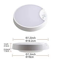 【Battery Powered & USB Rechargeable】No electrical wiring required, you can place the battery powered motion sensor light anywhere in your space without any limitations, perfect for rented spaces or areas without electrical outlets. Rechargeable batteries save you money and the hassle of constantly buying new batteries. Large capacity 4500mAh battery lasts up to 20 hours at 100% brightness and in “ON” mode. In “AUTO” mode, it can be used for a maximum of about 60 days. 【3 Operating Modes】AUTO 1 Mode: Motion activated light turns on when you are within 9-16 feet of the light and it is dark enough, and turns off 20 seconds after no motion is detected. AUTO 2 Mode: The motion activated light turns on when you are within 9-16 feet of the light, regardless of ambient brightness, and turns off 20 seconds after no motion is detected. On Mode: In this mode, the motion sensor function will be turned off and the light will be used as a normal light. 【Push Button & Remote Control】With push button controls directly on the fixture, adjusting settings and switching between modes is effortless. In addition, the remote control extends the usability of the ceiling light, allowing you to manage the lighting settings from a distance, making operation even easier. 【Memory Function】Memory function allows the fixture to remember the last brightness and color temperature settings used before turning off in AUTO mode, saving you the trouble of readjusting the brightness or color temperature every time you use the lamp. 【Easy installation】In addition to the convenience of wireless installation, the screw-in installation is also very fast and does not require professional assistance. Motion sensor lights can be used in a variety of areas such as hallways, closets, stairs, kitchens, pantries, balconies, basements, attics, lofts, porches, entryways, laundry rooms and more. 【Quality services】We pay great attention to your shopping experience, when you buy our products encounter any quality problems, you can contact us at any time, please rest assured that the purchase.