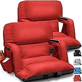 Wide Stadium Seats With Back Support 2 Pack, Exclusive "Sofa Style" Design Extra Thick Bleacher Chairs With Back and Cushion, 6 Reclining Positions - Ultimate Comfort for Sports Events (Red, 22.5")