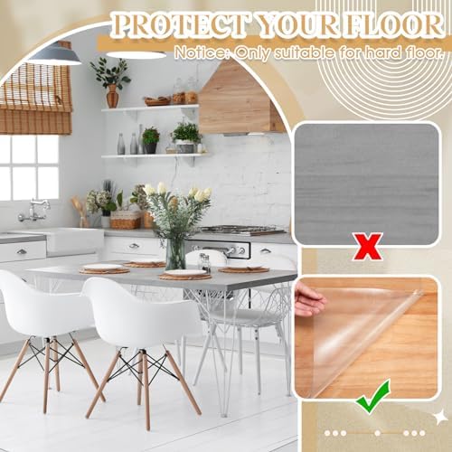 - Durable and Easy to Clean: our clear floor mat is designed vinyl, durable and long lasting performance; It stands up to regular wear and tear, providing you with a reliable flooring solution for high traffic areas in your home or office; Easy to clean, just wipe with a vacuum cleaner or rag; Please note that it is not suitable for use on carpets