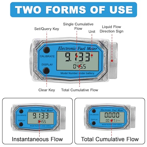 - Durable Construction - This digital fuel meter features an aluminum alloy casing and stainless steel turbine, ensuring durability and long-lasting performance in various environments. Operating temperature: -10°C~80°C (14-176°F).