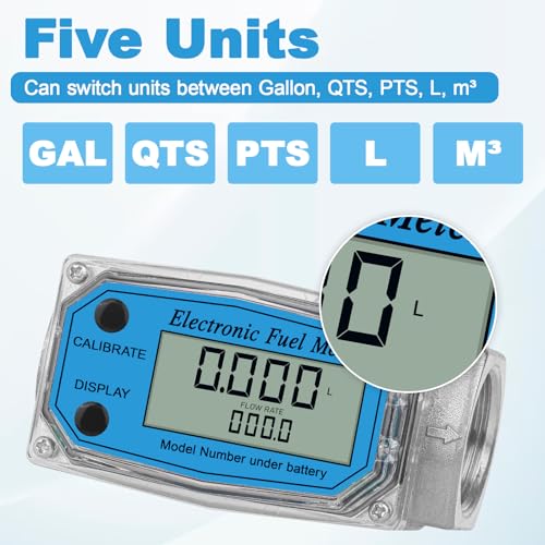 - Multiple Unit Options - Switch between GAL, QTS, PTS, L, and m³ units to meet your specific measurement needs, providing flexibility and convenience. Flow range: 2.6-26 GPM (10-100 LPM), working pressure: 6 Bar.